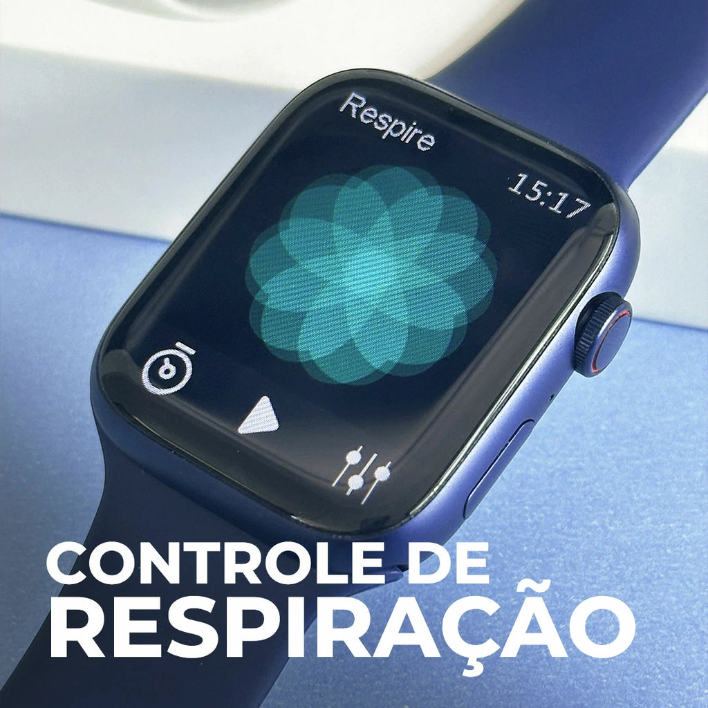 Tem sensor de frequência cardíaca, oxigênio no sangue (SpO₂), pressão arterial, monitor de sono e alerta de sedentarismo.