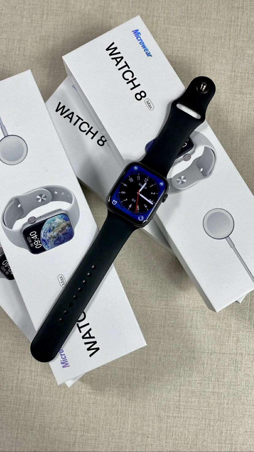 Tem formato quadrado, bem na linha dos Apple Watch Series 8, com dimensões por volta de 45 × 38 × 10 mm e peso de cerca de 50g.