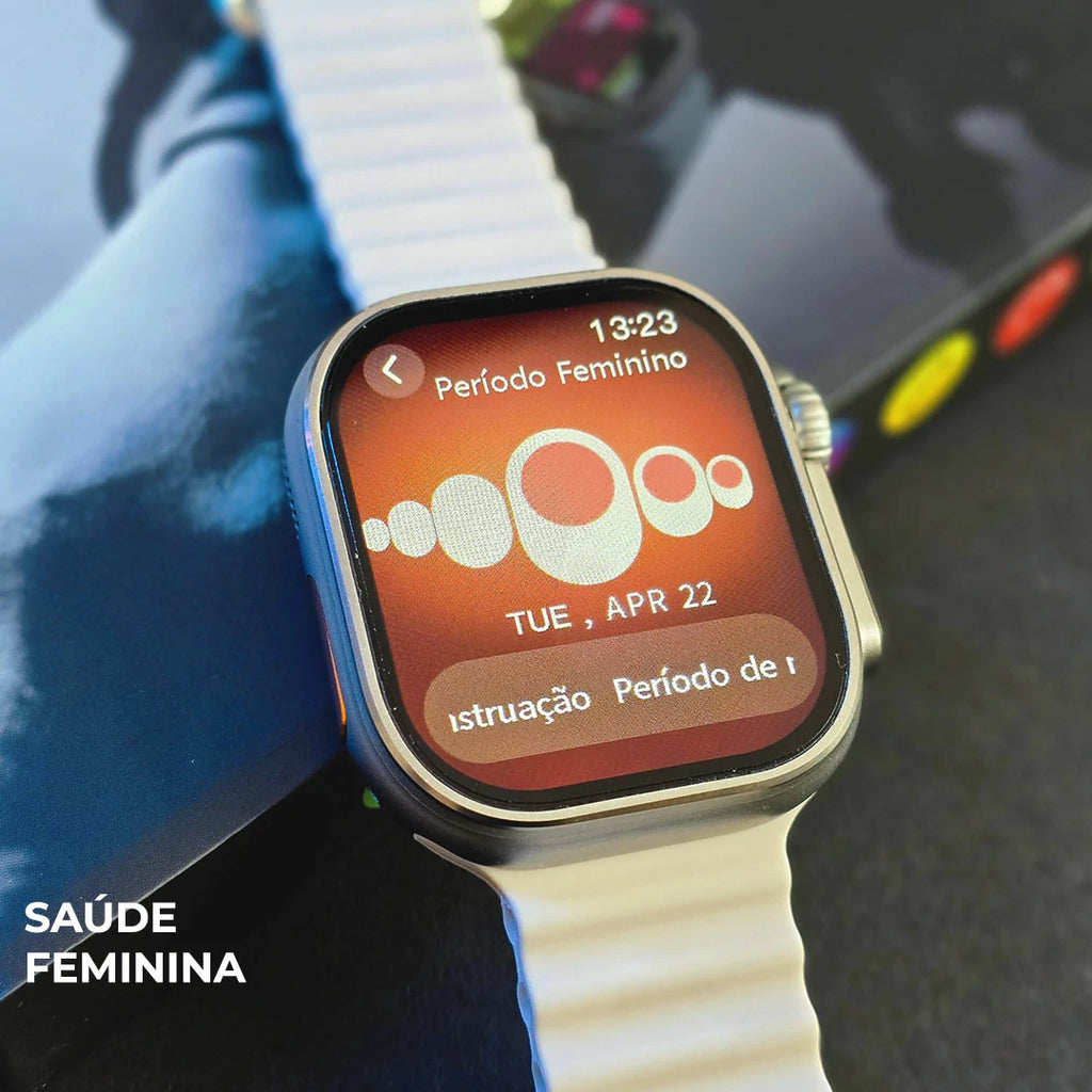 Oferece monitoramento completo: ECG, batimentos cardíacos, pressão, SpO₂, ciclo menstrual, sono e até temperatura corporal.