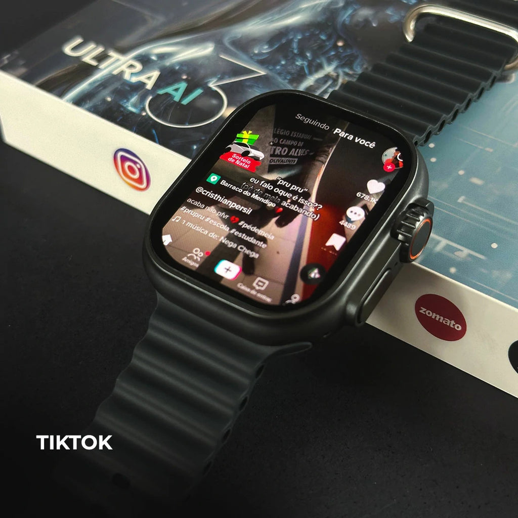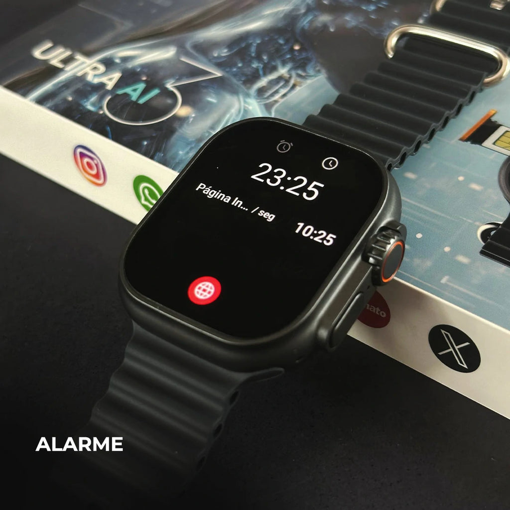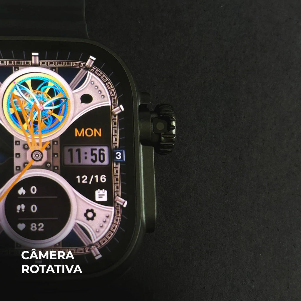 Funciona como um teléfono de pulso, com suporte a 4G/5G, Wi‑Fi e slot para chip nano-SIM — faz ligações, envia mensagens, navega na internet sem depender do celular.